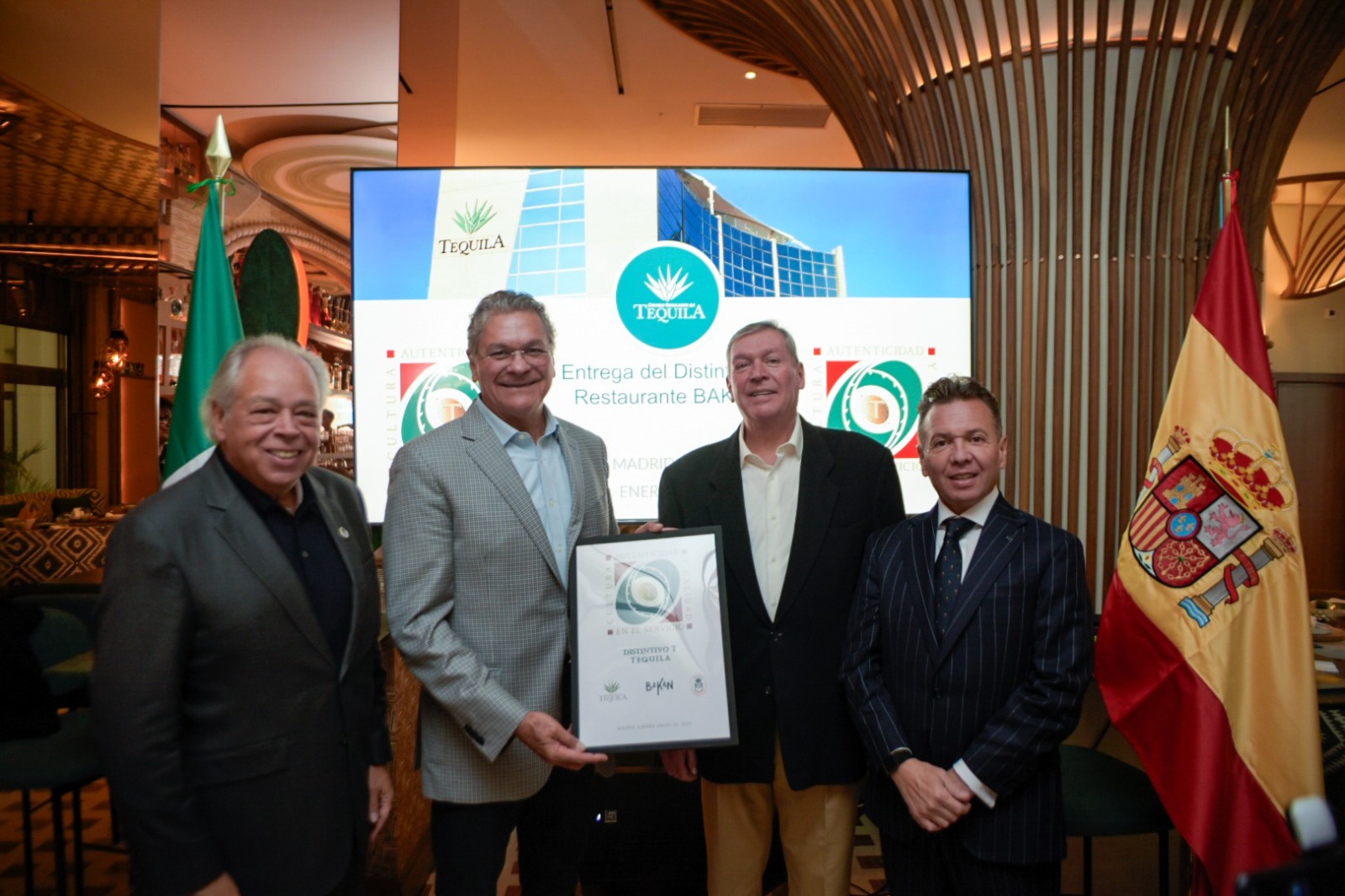 En gira de trabajo por España, el Gobernador del Estado de Jalisco, Pablo Lemus Navarro y el presidente del Consejo Regulador del Tequila A.C. (CRT), Aurelio López Rocha, entregaron el Distintivo T, al restaurante “Bakan”, ubicado en la ciudad de Madrid, como reconocimiento a su compromiso y trabajo constante por difundir la Cultura del Tequila.