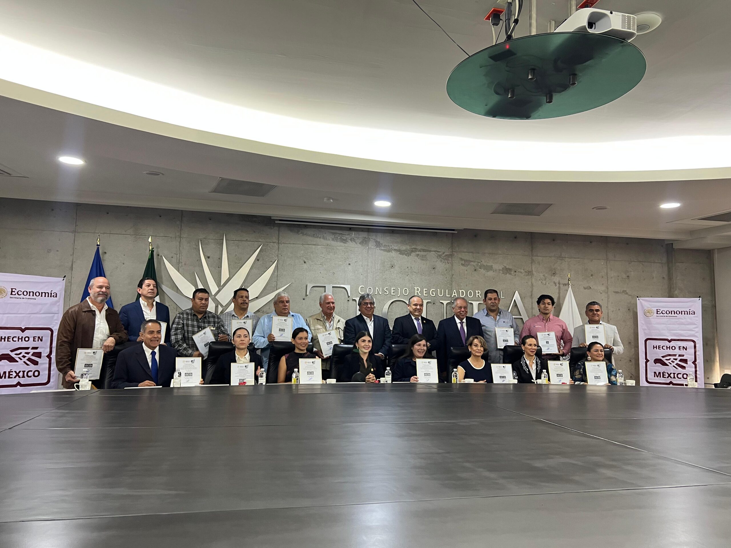 La Secretaría de Economía y el Consejo Regulador del Tequila (CRT) entregaron esta mañana 16 marcas de certificación Hecho en México con lo que se autorizó su uso en 85 marcas.